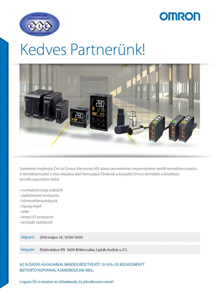 Innovatív ipari megoldások IDEJE: 2015. szeptember 23. (szerda) HELYSZÍN: Békéscsaba, Lipták u. 7/A (Elektrolabor Ipari Elektronika Kft. telephelye) JELENTKEZÉS: 2015. szeptember 18. (péntek)OKTATÁS DÍJA: DíjmentesCÉLCSOPORT: Villamos karbantartók, Villanyszerelők, Villamosmérnökök, Villamos tervezők, Műszaki vezetők, Karbantartás vezetők INFORMÁCIÓ: Hogyan lehet hatékony túlfeszültség-védelmet kiépíteni? Milyen eszközökkel lehet avillamos szekrényekben helyet és szerelési időt megtakarítani? Miért érdemes minőségitermékeket használni